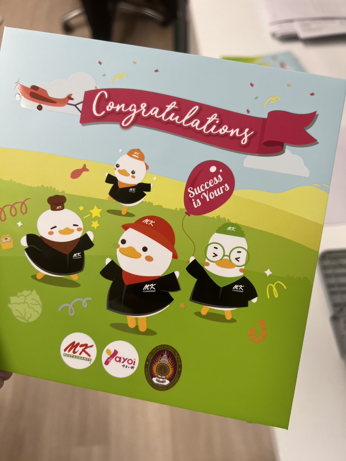 เพื่อร่วมแสดงความยินดีในโอกาสอันสำคัญนี้ บริษัทฯ มีความยินดีมอบ บัตรสมาชิกร้านอาหาร MK และร้านอาหารยาโยอิ (Yayoi) ให้แก่บัณฑิตทุกท่าน รวมถึงบุคลากรของมหาวิทยาลัย โดย ไม่มีค่าใช้จ่าย